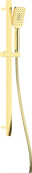 - Luksusowy ścienny zestaw prysznicowy w złotym wykończeniu. Posiada 3-funkcyjną słuchawkę prysznicową z systemem Anti-calc, stalowy drążek z regulowanym uchwytem oraz 150 cm wąż z systemem Anti-twist, zapobiegającym skręcaniu. W zestawie znajduje się reduk