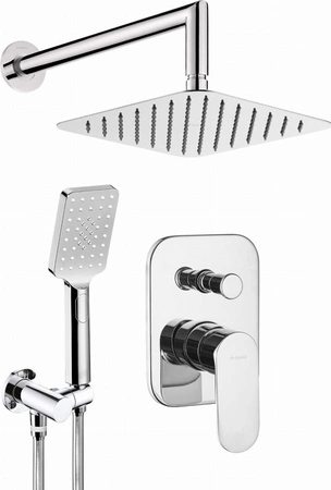 - Deante Alpinia bateria prysznicowa podtynkowa z deszczownicą i 3-funkcyjną słuchawką prysznicową, chromowana, z systemem Anti-calc, elegancki zestaw prysznicowy do nowoczesnej łazienki.
