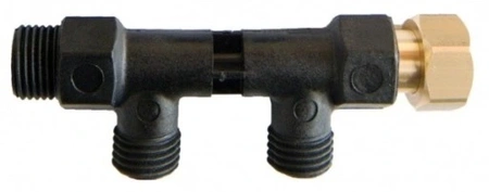 Dafi przyłącze ciśnieniowe z jednym śrubunkiem, wykonane z tworzywa sztucznego. Łącznik posiada dwa gwinty 1/2", jeden z gwintów zakończony jest śrubunkiem, a drugi jest gwintem zewnętrznym. Łącznik posiada dwa górne podłączenia do ogrzewacza o wymiarze M18*2. Jest to produkt marki Dafi tworzonej przez Formaster.