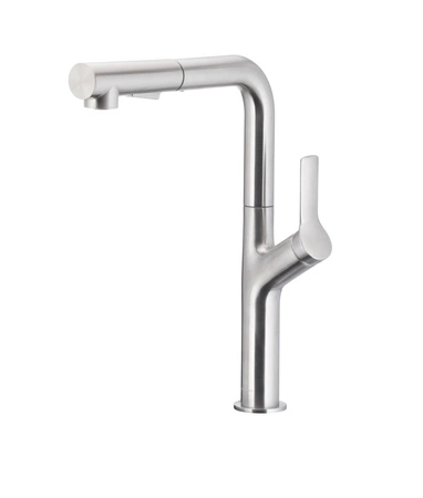 - KFA Armatura Duero Design Inox stylowa bateria kuchenna z wyciąganą wylewką, wykonana ze stali nierdzewnej o szczotkowanym wykończeniu. Wyposażona w ceramiczny regulator Ø35, napowietrzacz i dwa tryby strumienia.