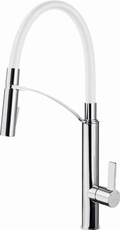 - Deante Gerbera bateria kuchenna stojąca chrom-biała to elegancka i funkcjonalna bateria kuchenna z wyciąganą słuchawką i elastyczną wylewką, idealna dla osób ceniących styl i wygodę.