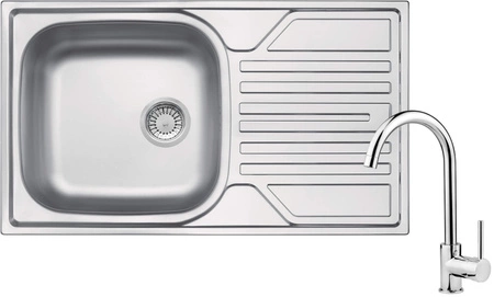 Deante Legato zlewozmywak stalowy 76x43,5 cm z ociekaczem i baterią kuchenną Luno chrom