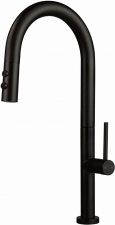 - Czarna bateria kuchenna Deante Olfato BQO_N72M z elastyczną, wyciąganą wylewką i 2-funkcyjną słuchawką. Matowe wykończenie nero, oszczędny przepływ Z (4–9 l/min), zawory zwrotne, aerator honeycomb. Styl i funkcjonalność w nowoczesnej kuchni