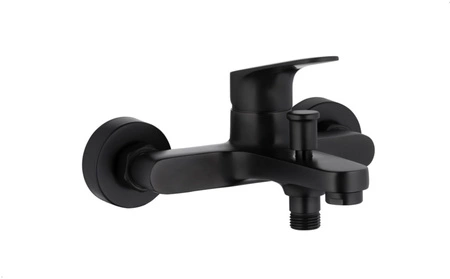 - Ścienna bateria wannowo-prysznicowa czarna matowa, wykonana z mosiądzu, z ceramicznym regulatorem Ø35 i napowietrzaczem. Przepływ wody 21,5 l/min, ciśnienie robocze 3 atm, maksymalna temperatura wody do 90°C. Rozstaw przyłączy 150 mm ± 15 mm. W komplecie