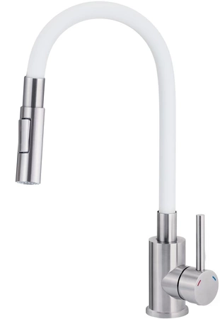 Deante Luno Bateria Kuchenna z Elastyczną Wylewką Biała BOC W740
