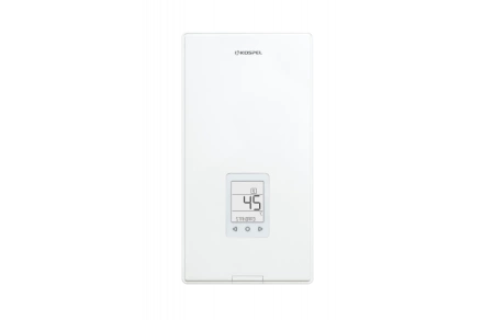 - Kospel PPE4.M-10/11/12/15.PL – przepływowy podgrzewacz wody z elektronicznym sterowaniem i wyświetlaczem LCD. Zapewnia precyzyjną regulację temperatury w zakresie 30–60°C, zdalne sterowanie aplikacją, ochronę przed oparzeniem i wysoką wydajność do 7,2 l/
