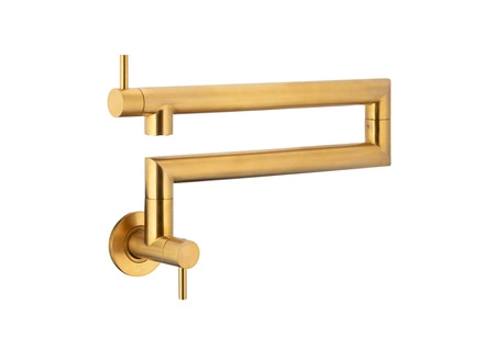 KFA Armatura Duero 6623-030-31 to elegancki zawór kuchenny ścienny w wykończeniu złoto szczotkowane PVD, zaprojektowany z myślą o maksymalnej wygodzie podczas gotowania. To nowoczesne rozwiązanie typu pot filler pozwala na napełnianie garnków bezpośrednio na kuchence, eliminując konieczność przenoszenia ciężkich naczyń z wodą. Dzięki swojej przemyślanej konstrukcji i składanej wylewce, bateria nie zajmuje miejsca, gdy nie jest używana, a przy tym stanowi stylowy akcent w każdej kuchni.