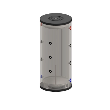 Konstrukcja zbiornika umożliwia pionowy montaż podłogowy, co ułatwia instalację i pozwala na oszczędność miejsca. Dzięki izolacji z pianki poliuretanowej o grubości 60 mm, straty ciepła są minimalne, co poprawia efektywność energetyczną całego systemu. Metalowy płaszcz zewnętrzny zapewnia trwałość i odporność na uszkodzenia mechaniczne.