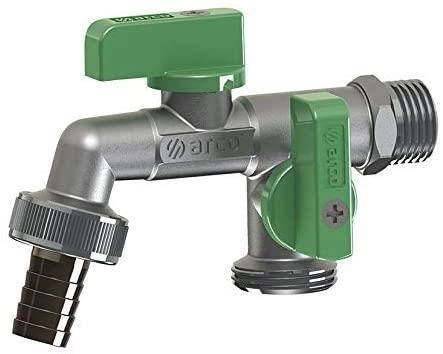 - Zawór kulowy czerpalny ARCO NANO DOBLE 1/2GZ x 3/4GZ z systemem antykamiennym VITAQ. Wyposażony w dwa niezależne wypływy, idealny do instalacji wodnych i ogrodowych. Wykonany z niklowanego mosiądzu.