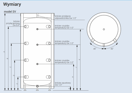 - Kospel SV-200.1.PL to nieemaliowany zbiornik buforowy c.o. o pojemności 220 litrów, idealny do współpracy z wieloma źródłami ciepła. Dzięki wysokiej jakości izolacji i przemyślanej konstrukcji zapewnia efektywne magazynowanie energii cieplnej oraz prosty